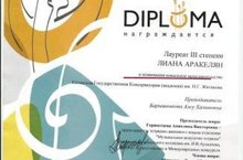 Поздравляем преподавателя Аракелян Лиану Гагиковну с победой(лауреат 3 степени) в Международном конкурсе "Золотая лира"