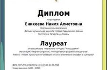 Поздравляем Еникееву Н.А. с победой во Всероссийском дистанционном конкурсе с международным участием - Диплом 2 степени - в номинации "Лучшая методическая разработка"