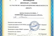 Поздравляем Ак Алину с победой - дипломант 1 степени - во 2 Международном фестивале искусств "Винарт", класс преподавателя Мухутдинововй Г.Р.