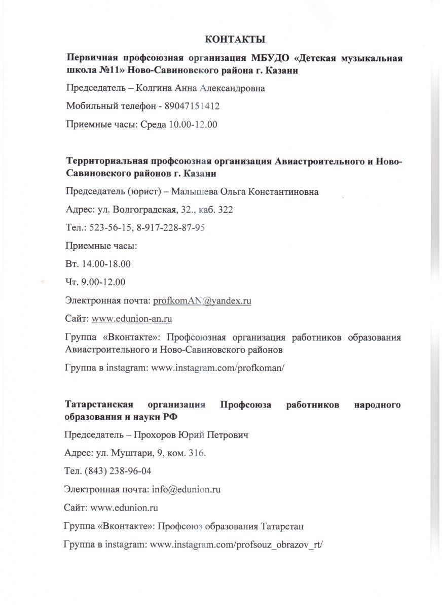 Состав профсоюзного комитета ДМШ №11