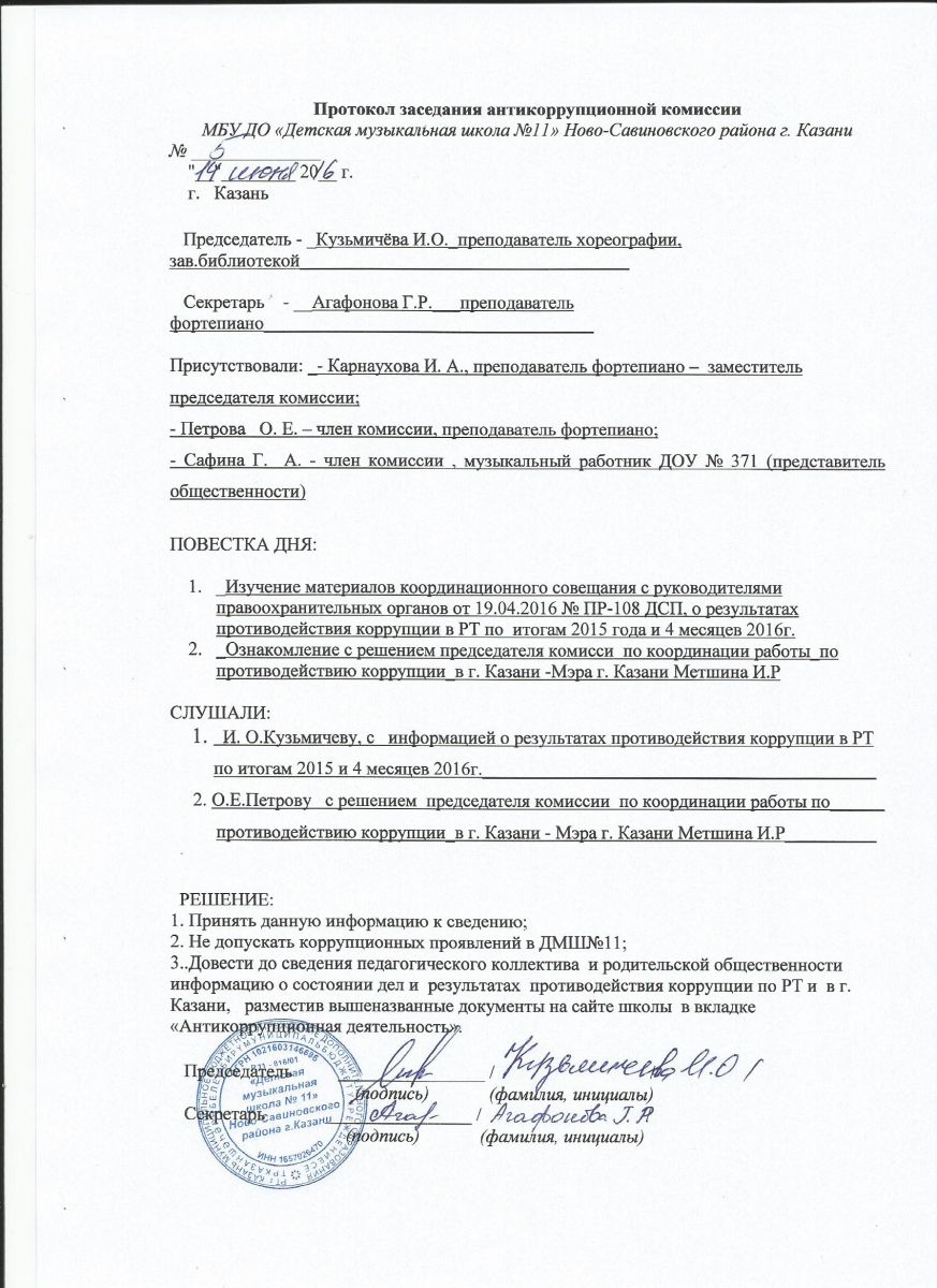 План мероприятий борьбы с коррупцией ДМШ №11Ново-Савиновского района г. Казани на 2018-2019 уч. год.