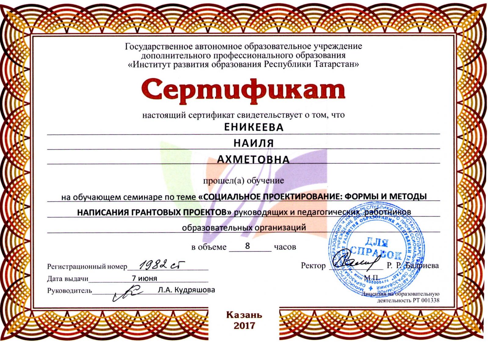 8 Гургенидзе А.А. Свидетельство "Республиканский семинар директоров"