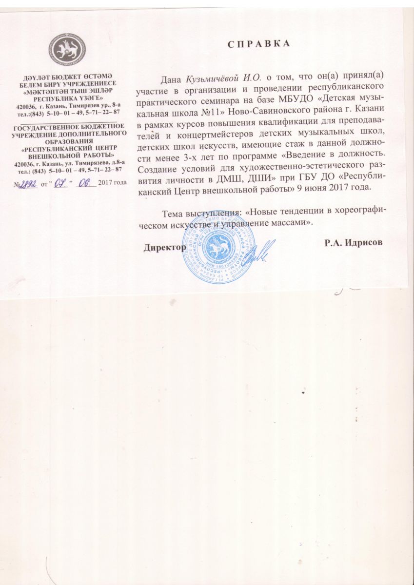 1 Кузмичева И.О. Сертификат "Инновационные педагогические методы как средство модернизации образовательного процесса на уроках хореографии в учреждениях дополнительного образования"