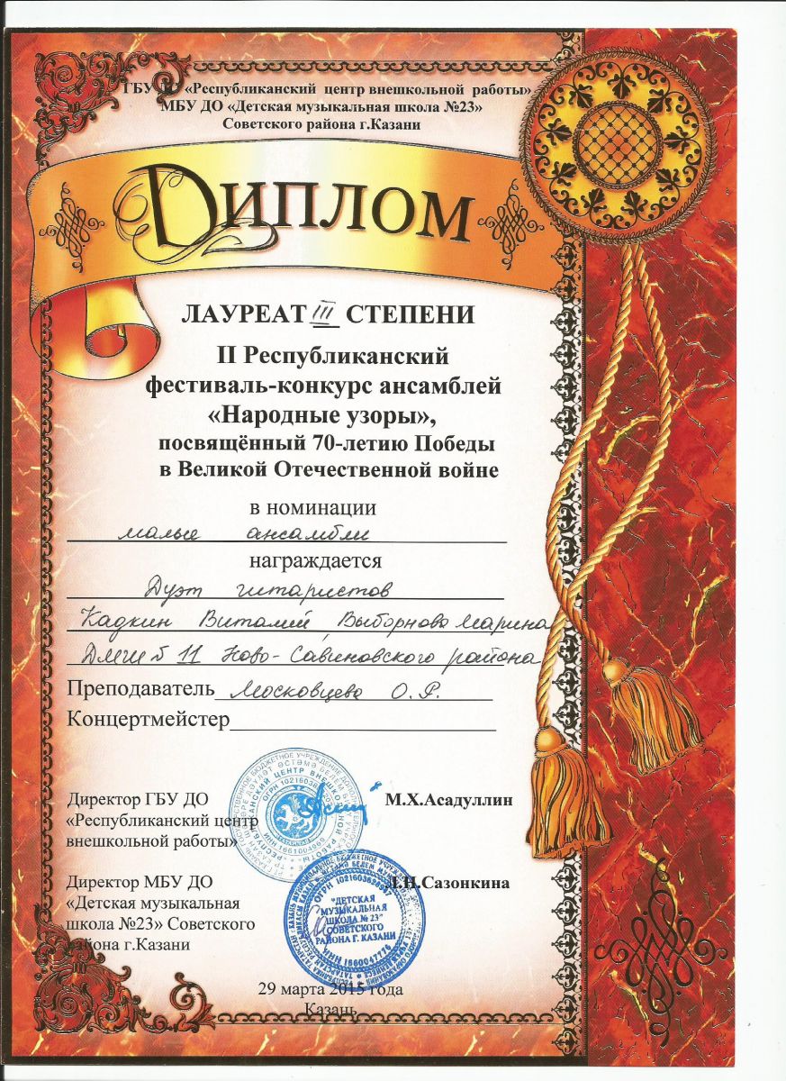 2 трио гитаристов, дипломант 1 степени, Народные узоры
