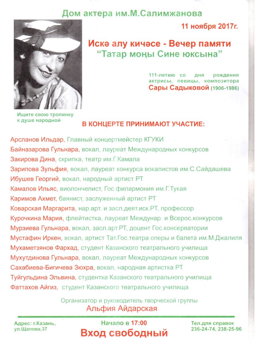 9 Концерт "Искэ алу кичэсе" - "Вечер Памяти", посв. С.Садыковой