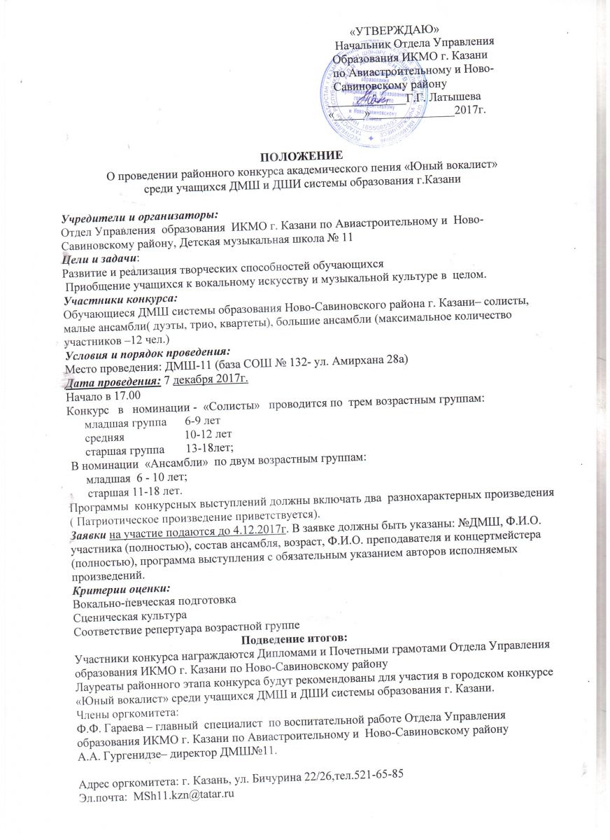 Приказ по ДМШ № 11 "Прослушивание претендентов на именную стипендию Мэра г. Казани"