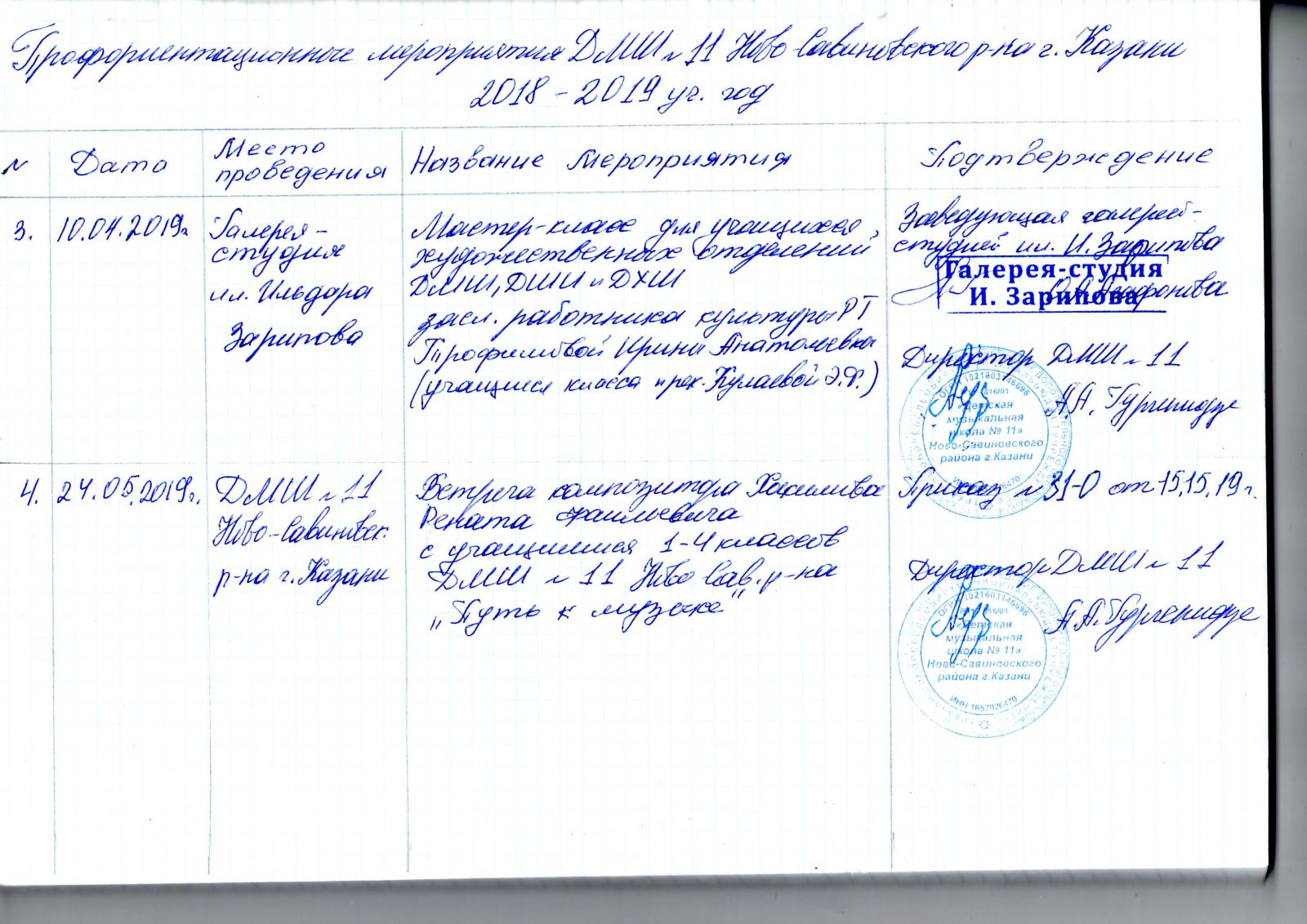 Журнал провориентационных мероприятий ДМШ11 за 2018-2019 г., стр. 2