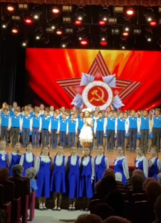 В завершение концерта публика в зале встала под звуки песен, которые исполнил сводный хор музыкальных школ Казани. В составе этого большого коллектива выступала и группа старшего хора ДМШ №11 (преподаватель Л.Р. Аксёнова).