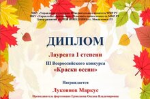 Поздравляем учеников преподавателя фортепиано Ермолаевой Оксаны Владимировны с успешным выступлением на III Всероссийском конкурсе "Краски осени" в номинации "Творчество без границ":