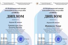 Поздравляем с успешным выступлением на IX Республиканском конкурсе исполнительского искусства "FORTE" воспитанников преподавателя Зиминой Диляры Мясновеевны в номинации "Общее фортепиано":