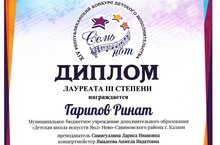 - Гарипов Ринат - Лауреат 3 степени в номинации вокал,соло. 1 средняя возрастная группа.Преподаватель Самигуллина Л.И., концертмейстер Ямалеева А.Я.
