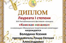 - Володину Ксению - Лауреата 1 степени в номинации "Музыкально-теоретическая олимпиада"