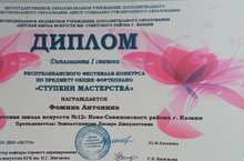 Поздравляем с успешным выступлением на Республиканском фестиваль-конкурсе по предмету общее фортепиано "Ступени мастерства":- Николаеву Есению - Лауреата 2 степени (преподаватель Ермолаева О.В.)
