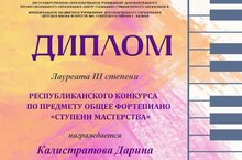 Поздравляем с успешным выступлением на Республиканском конкурсе по предмету общее фортепиано "СТУПЕНИ МАСТЕРСТВА"