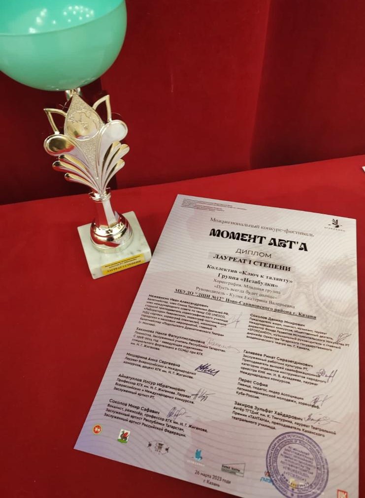 Поздравлем с успешным выступлением воспитанников преподавателя Кулик Е.В. на Межрегиональном конкурсе-фестивале "Момент ART'A" Хореографический коллектив "Ключ к таланту" группу "Ласточки" - Лауреатов 1 степени, обладателей ГРАН-ПРИ! Желаем дальнейших успехов!
