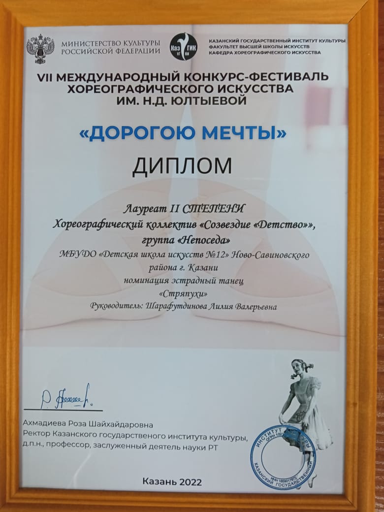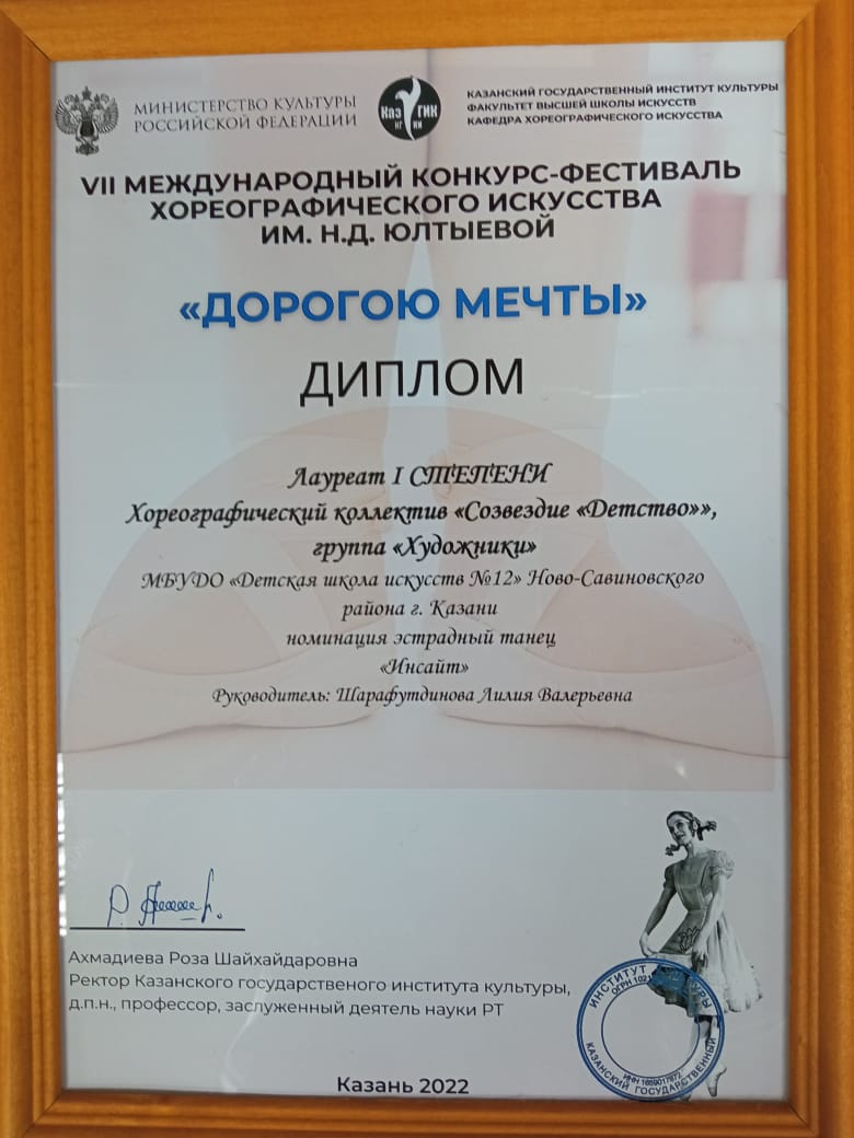 Поздравляем с успешным выступлением на VII Международном конкурсе-фестивале хореографического искусства им. Н.Д. Юлтыевой "Дорогою мечты" хореографический коллектив под руководством Шарафутдиновой л.В. "Созвездие "Детство"" :- группу "Художники" - Лауреата 1 степени