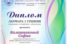 - Калашникову Софию - Лауреата 1 степени в номинации Вокальное и музыкальное искусство. Преподаватель Шакиров А.Р.