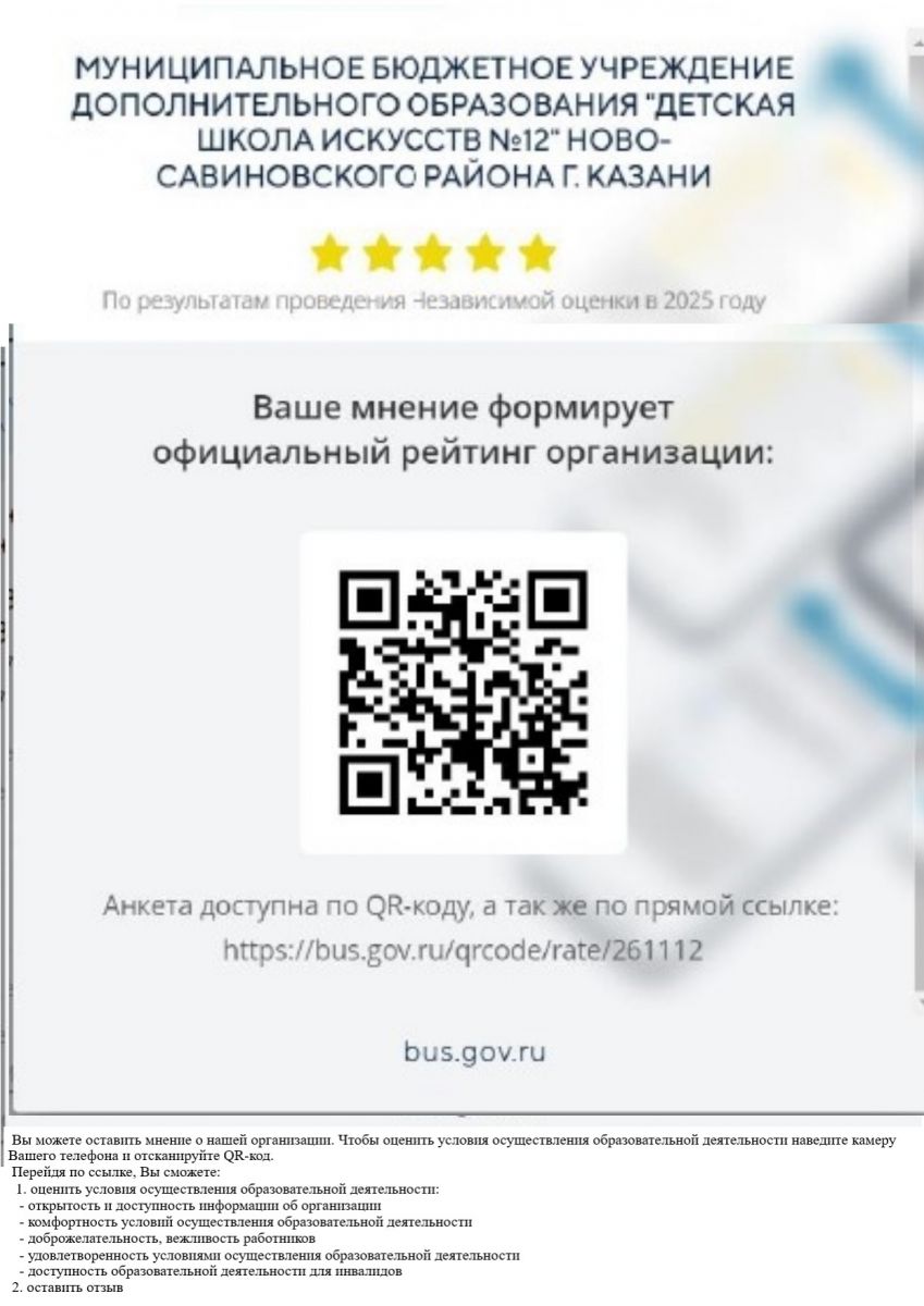 Муниципальное бюджетное учреждение дополнительного образования "Детская школа искусств №12" Ново-Савиновского района г. Казани /Казан шәһәре Яңа Савин районының "12 нче номерлы балалар сәнгать мәктәбе" өстәмә белем бирү муниципаль бюджет учреждениесе