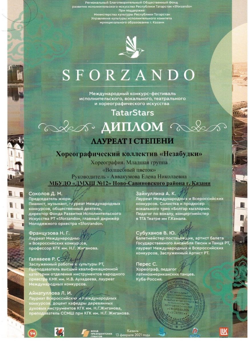 Поздравляем с успешным выступлением на Международном конкурсе-фестивале исполнительского, вокального, театрального и хореографического искусства "TatarStars"- Хореографический коллектив "Незабудки" - Лауреатов 1 степени (преподаватель Аввакумова Е.Н.)