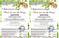 - Самигуллина Марселя - Лауреата 3 степени (преподаватель Самигуллина Л.И., Ергакова В.Н.)