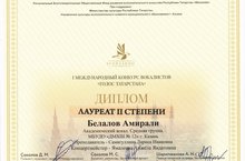 Поздравляем с успешным выступлением на 1 Международном конкурсе вокалистов "Голос Татарстана" ученика школы - Лауреата 2 степени в номинации Академический вокал. Средняя группа.