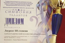 Поздравляем с успешным выступлением на Международном конкурсе искусств "Симфония талантов"
