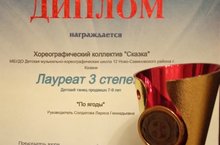 - Хореографический коллектив "Сказка" - Лауреатов 3 степени (преподаватель Солдатова Л.Г.)