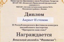 - Вокальный ансамбль "Фантазия" - Лауреатов 2 степени