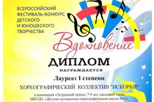 Поздравляем с успешным выступлением на Всероссийском фестиваль-конкурсе детского и юношеского творчества "Вдохновение"