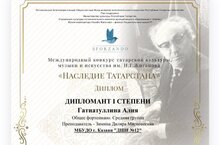 Поздравляем с успешным выступлением на Международном конкурсе татарской культуры, музыки и искусства им. Н.Г. Жиганова "НАСЛЕДИЕ ТАТАРСТАНА":