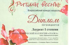 Поздравляем с успешным выступлением на Всероссийском конкурсе искусств «Ритмы весны»:
