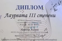 Нефедова Андрея - Лауреата 3 степени (преподаватель Хабибуллина Лилия Фэатовна).