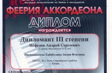 На III Международном конкурсе-фестивале "Феерия аккордеона" Нефедов Андрей занял 3 место.