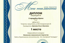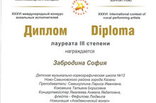 Поздравляем Забродину Софию - вокал, Фефилову Людмилу- флейта (преподаватели: Самигуллина Л.И., Коковкина Т.Б., концертмейстер Ямалеева А.Я.) ставшими лауреатами 3 степени на XXXVI Международном конкурсе вокальных исполнителей "Звездный проект". Желаем дальнейших успехов!