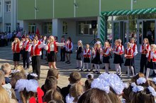 Сегодня на торжественной линейке в СОШ 103, посвященной Дню знаний, выступил Хор творческой площадки ДШИ 15 и вокальный ансамбль "Созвучие".