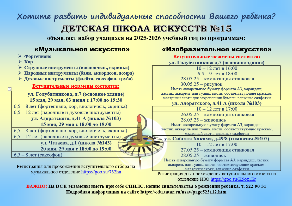 "Детская школа искусств №15" объявляет набор учащихся в 1 класс на 2025-2026г.г.