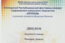 Макаров Данила - Лауреат 1 степени (рук. Хайруллина О.С.)