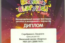 Вокальная группа "Квартал" - Диплом серебрянного Лауреата (руководитель - Марданова Г.М., преподаватеь - Мирная Р.Р. )