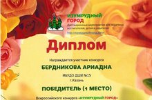 Юсупова Аделина - Дипломант 1 степени (преподаватель - Фефелова Е.Ю.)