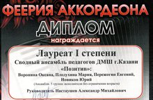 Поздравляем сводный ансамбль педагогов "Позитив" (руководитель Настаушев А.М.) с Дипломом Лауреата 1 степени IV Международного конкурса-фестиваля "Феерия аккордеона"