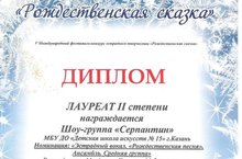 Поздравляем победителей V Международного фестиваля-конкурса эстрадного творчества "Рождественская сказка" - Шоу-группу "Серпантин", Лауреатов II степени. (преподаватели Марданова Г.М., Яруллина Р.Р., Мусин Р.В., Бадьянова Т.Г.)