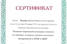 Республиканский семинар "Развитие творческой мотивации учащихся в классе струнно-смычковых инструментов ДШИ и ДМШ" 08.02.2014
