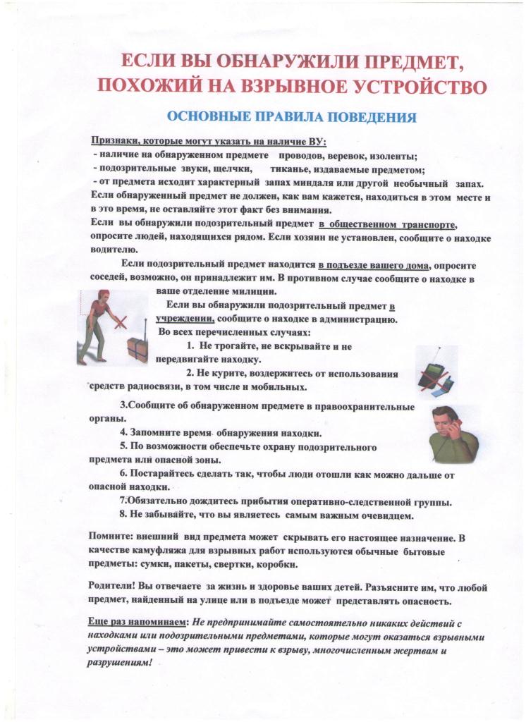 ПАМЯТКА "Если вы обнаружили предмет, похожий на взрывное устройство"