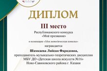 Шамкаева Л.Ф. заняла 3 место в Республиканском конкурсе "Мое призвание" с разработкой урока по творчеству Моцарта. Поздравляем и желаем вдохновения для новых работ!