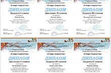 Козлова Арина - дипломант 2 степени, Великородная Александра - лауреат 3 степени, Чапаева Анна - лауреат 1 степени (преподаватель Терентьева А.В.), Бахтигариева Азалия - дипломант 1 степени, Загидуллина Лейла - лауреат 3 степени, Фардиев Данияр - лауреат 2 степени (преподаватель Исмагилова О.И.). Поздравляем наших юных художников и желаем им ярких идей и вдохновения для новых свершений! -