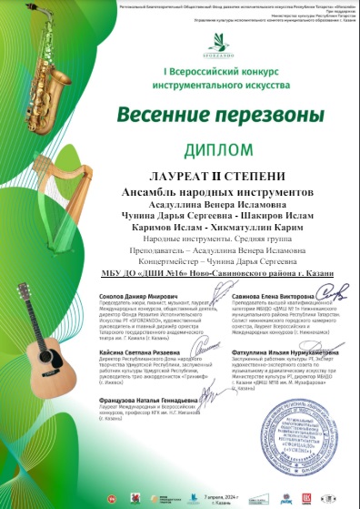 Поздравляем победителей I Всероссийского конкурса инструментального искусства "Весенние перезвоны":