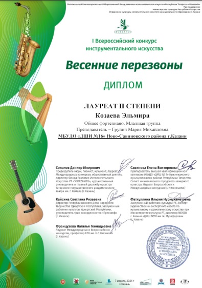 Поздравляем лауреатов Открытого Республиканского конкурса мальчиков и юношей, который состоялся в Казани 13 апреля 2024 года: