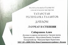 В этот день на этом мероприятии собрался весь Татарстан: Набережные Челны, Елабуга, Альметьевск, Нижнекамск, Бавлы, Рыбная Слобода, Азнакаево, Арск и другие города и районы, и, конечно же, Казань! Поздравляем Сабирзянова Алима, ставшего лауреатом II степени в номинации "Духовые и ударные инструменты" (преп. Мухутдинов Р.Т., концертмейстер Мамедова Б.Н.), а также дуэт преподавателей Багаеву Л.А. и Борисову Н.А. с дипломом лауреата II степени ( концертмейстер Виноградов С.А.). Желаем победителям новых творческих достижений! -