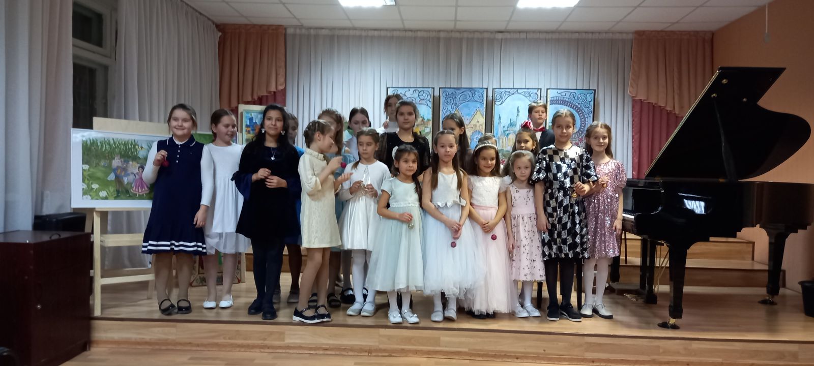 23 декабря прошёл концерт фортепианного отдела. Участвовали обучающиеся классов преподавателей: Демидович Е. А., Саламатиной С. Н., Ахметшиной Г. Г., Нигматуллиной Г. Ш., Киселевой А.С., Селивановой А. Я., Груйич М. М., Салимовой Г. М., Митиной А. А.