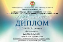 Поздравляем обучающихся класса Исхаковой Сафии Маан с блестящим выступлением на Международном конкурсе хорового искусства, академического вокала и инструментального исполнительства "Серебряные росы". Парлак Ясмин - Лауреат 1 степени, Мавлютова Сафия - Лауреат 2 степени! Молодцы!